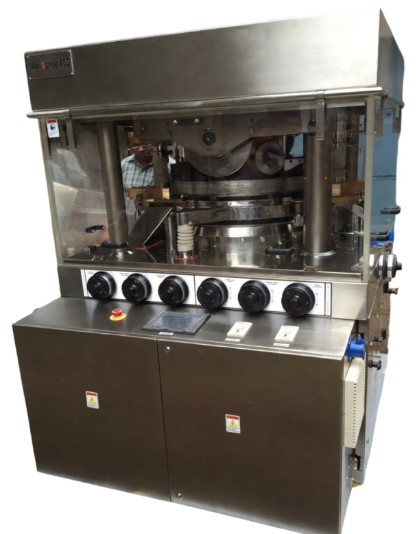 Tablet Presses are designed with the latest mechanical and electronic technology, ensuring GMP and operator safety. They are offered as single-sided or double-sided units, featuring pre-compression. Machine RPM is controlled via a VFD.